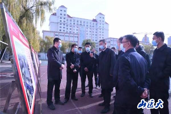 张复明实地察看了迎泽校区,了解校园建设发展现状,听取了学校迎泽校区地下停车场建设规划、临床医学研究中心建设规划、特种医学学科建设和高水平公共卫生学院建设情况。