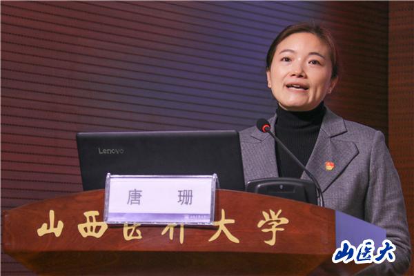 唐珊以《青春献礼二十大 强国有我新征程》为题,围绕“中国精神”“新青年”“中华民族的伟大复兴”等关键词,从感悟伟大抗疫精神、展现中国青年力量、当代医学生的责任与担当等方面启迪师生立志做有理想、敢担当、能吃苦、肯奋斗的新时代好青年。唐珊表示,“一代人有一代人的使命,一代人有一代人的担当”“奋斗是青春最亮丽的底色”年轻党员干部要牢记总书记的殷殷嘱托,听从党的召唤,以强烈的历史主动精神担当起新的时代重任,锻造“青春之我”,彰显“青春之美”。