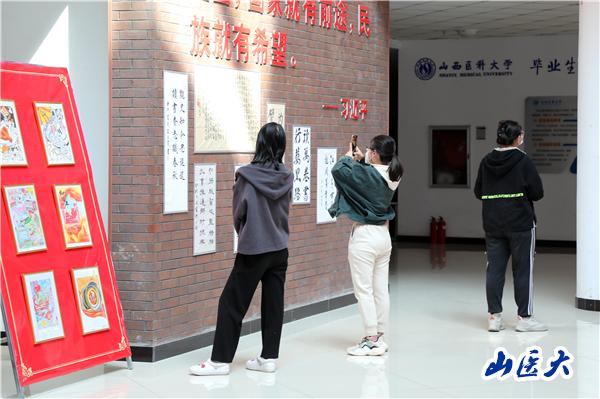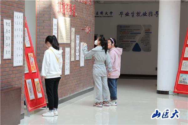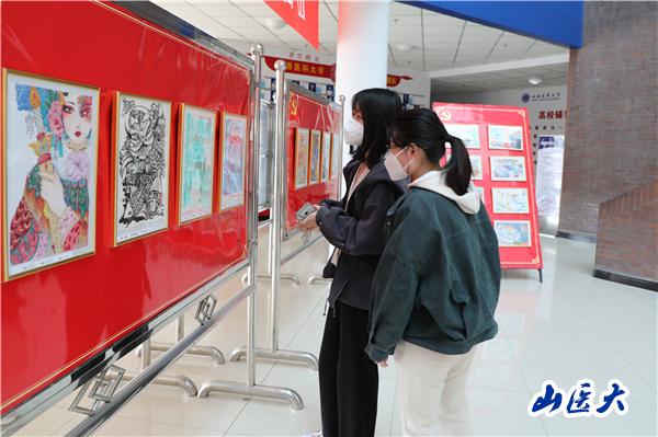 本次展出的优秀艺术作品,是从全校7000多名同学完成的作品中选出,涵盖了书法、手绘、手抄报、摄影、微视频、手工作品等不同的类型。这些作品取材现实,书写情怀,定格当下,展现了新时代十年共圆中华民族伟大复兴中国梦的生动实践,通过丰富的色彩、完美的造型和源于生活的感悟,彰显了鲜明的主题和精湛的制作技艺,表达了对新时代的热情讴歌和深情礼赞,师生们从中可以深刻感受到新时代这十年巨变带来的心灵震撼。这些作品,体现了山医学子深入学习宣传贯彻党的二十大精神,与党同心、与时代共振的政治觉悟,同时也是一次以原创作品宣讲党的二十大精神的主题活动。