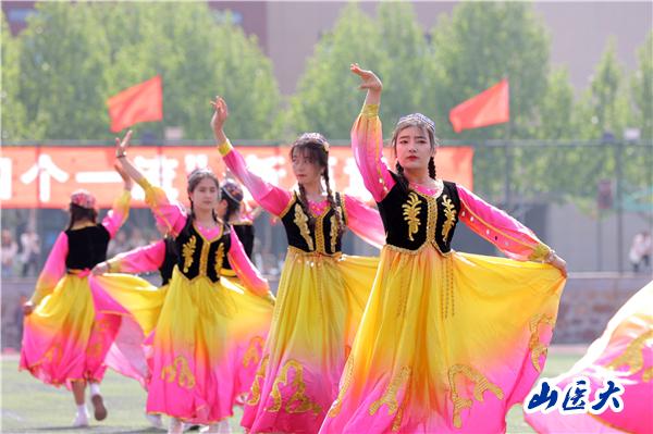 各单位整队退场后,大型文体展演“走进新时代、奋进新征程”开始。原山西省卫生厅党组书记、厅长李俊峰等校友代表接力传递着象征山医精神的“奋进之光”,展示着荣耀与传承。全校各院系参演人员、夕阳红舞蹈队、红石榴工作室、法医学院啦啦队、国际教育学院劲风鼓乐团和800余名师生员工的精彩表演将运动会开幕式的气氛再次推向高潮。