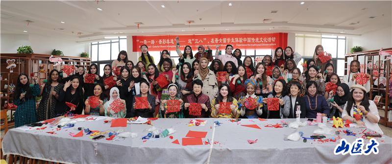 3月5日,山西省妇联“一带一路·晋彩非遗”——迎“三八”在晋女留学生体验中国传统文化活动在我校举办,来自我校和山西大学、太原理工大学的巴基斯坦、印度尼西亚、尼日利亚、南非等14个国家50余名在晋女留学生一起感受中华优秀传统文化的魅力,喜迎“三八”国际妇女节。
