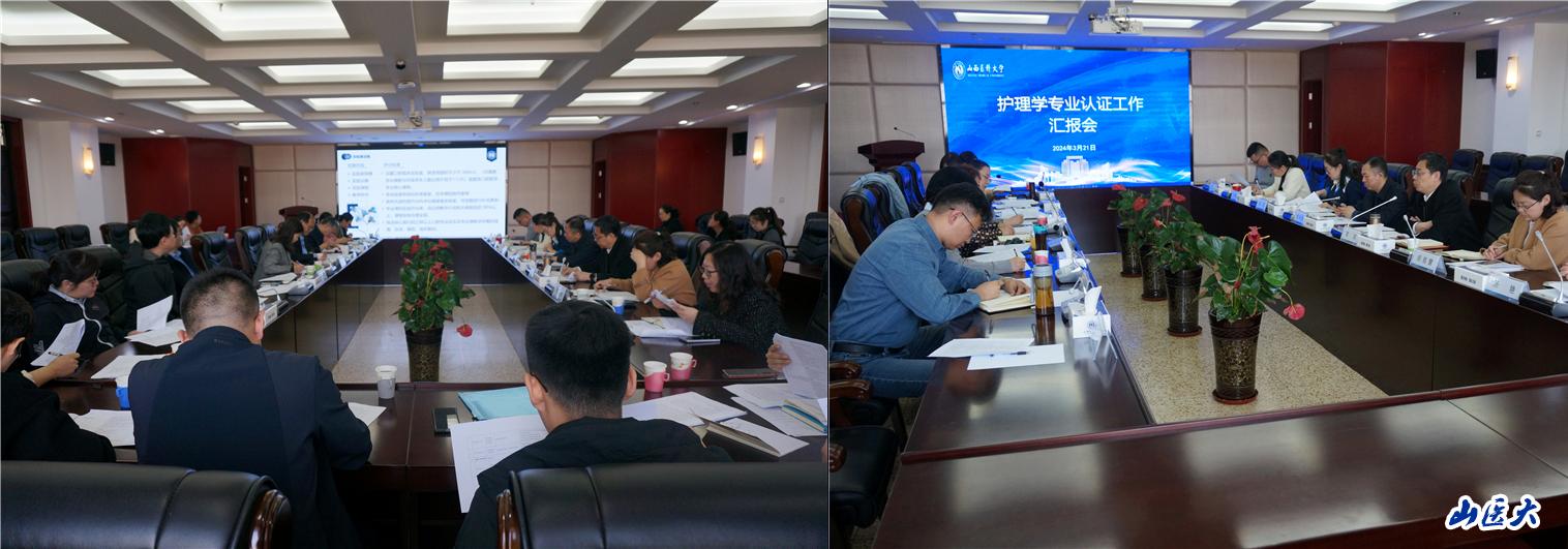 护理学院院长商临萍作了护理学专业认证工作汇报,她从前期准备工作、目前存在的问题及需要学校指导与支持的工作几大方面进行了汇报,护理学院分管教学副院长郭锦丽重点提出了护理教育教学目前存在的一些具体问题及下一步努力的方向,其他学院班子成员围绕护理专业认证,就自己的任务分工和负责的主要工作分别进行了汇报。