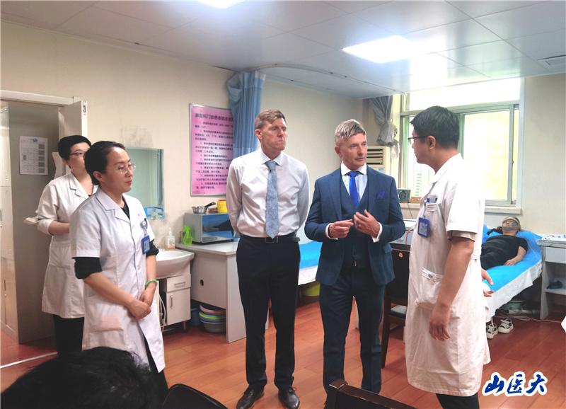 随后,举行了两校中外合作办学洽谈会。党委常委、副校长焦向英出席会议,教务部、研究生学院、国际教育学院、公共卫生学院、护理学院和康复医学等院系负责人参加座谈。焦向英介绍了学校在专业建设、科学研究、人才培养及国际化等方面的办学特色和工作亮点。他表示,这次实地到访,进一步加深了两校间的了解和互信,将凝聚合力推动两校合作办学落地落实。Robin Carey对合作过程中各相关学院团队积极、高效、细致的工作给予高度评价。他表示,两校强强联合,一定可以培养出更多适应新时代健康发展、国际化、高素质优秀医学人才。