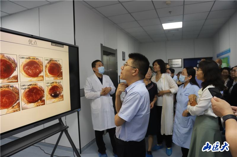 实验动物中心负责人陈朝阳教授汇报了中心基本情况以及发展目标。果蝇平台负责人倪建泉教授介绍了果蝇在医学研究中的应用情况及果蝇研究平台建设进展。