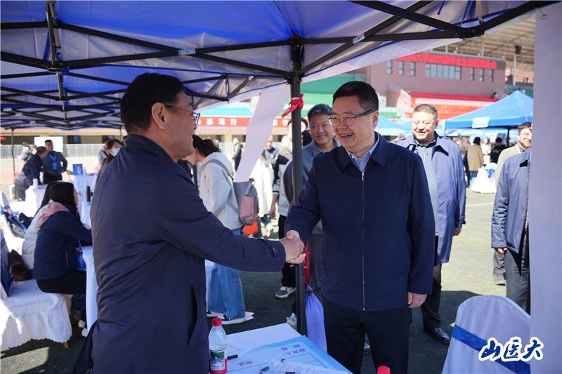 本次双选会不仅有我校2025届4500余名毕业生参加,作为促进高校毕业生就业的重要平台,还汇聚了山西农业大学、长治医学院、大同大学医学院、汾阳学院等省内院校毕业生,为他们提供了更为广阔的就业选择。双选会还通过“线下招聘+线上直播”同步进行的模式,在直播间开展“云端带岗”活动,整合资源,促进人才与岗位的精准对接。