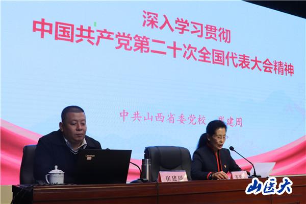 11月5日,学校党校第一期“三支队伍”党的二十大精神专题研修班邀请山西省委党校党的建设教研部主任崔建周教授作“深入学习贯彻中国共产党第二十次全国代表大会精神”的专题教学,研修班全体学员参加,马克思主义学院院长苏果云主持。