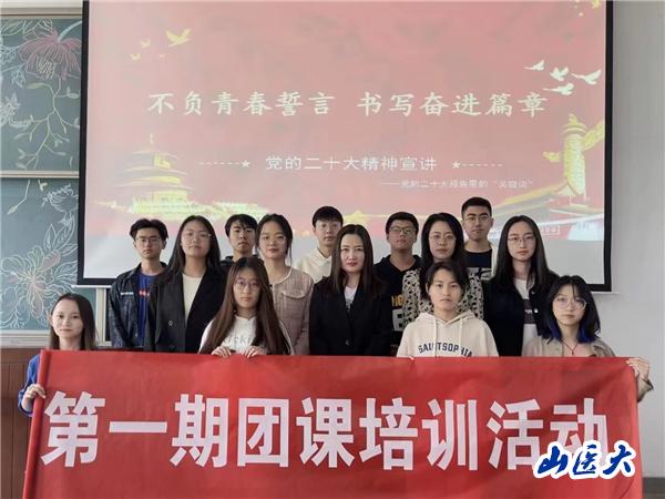 为深入贯彻党的二十大精神,积极响应学校号召,4月18日上午,口腔医学院分团委在中都校区慎思楼b201教室举办了2023年第一期团课培训。培训由学院分团委书记张楠主讲,入党积极分子、推优同学及学生干部共100余名团员青年参加学习。