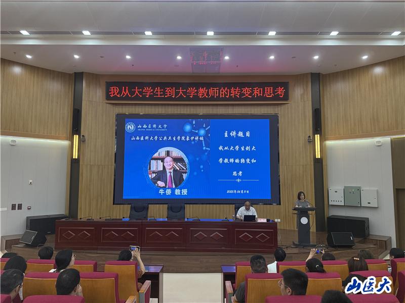 6月11日上午,我校牛侨教授受邀登上公共卫生学院“象伊讲坛”,以《从大学生到大学教师的转变和思考》为题开讲。公共卫生学院党委副书记蔚钰琼主持报告,公共卫生学院师生代表现场聆听这场兼具时代厚度与育人情怀的大思政课。