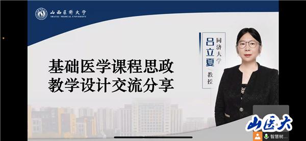 10月27日晚,学校联合智慧树邀请同济大学吕立夏教授线上进行基础医学课程思政教学设计交流分享,助力提升参加山西省高校课程思政教学设计大赛参赛教师的课程思政教学能力。