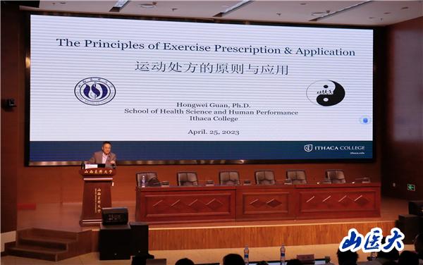 为迎接学校第60届运动会,引导师生深入了解体育与健康相关知识,4月26日下午,体育教学部(运动康复系)诚邀美国伊萨卡大学终身教授关红卫在行政楼一层学术报告厅,为广大师生带来了题为《运动处方的原则与应用》的专题讲座。我校300余名师生聆听了本次讲座,体育教学部(运动康复系)主任曹小清主持讲座。