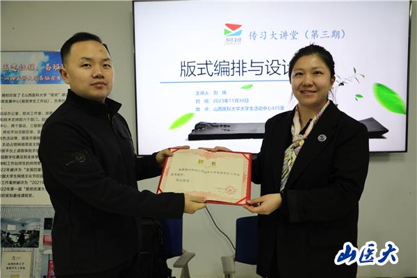 11月30日晚,学生工作部易班学生工作站在中都校区大学生活动中心415室举办了第三期“传习大讲堂”——版式编排与设计。培训由山西应用科技学院副教授刘玮主讲,学生工作部副部长杨洁出席,易班学生工作站指导老师王玉男主持,易班学生工作站成员参加培训。