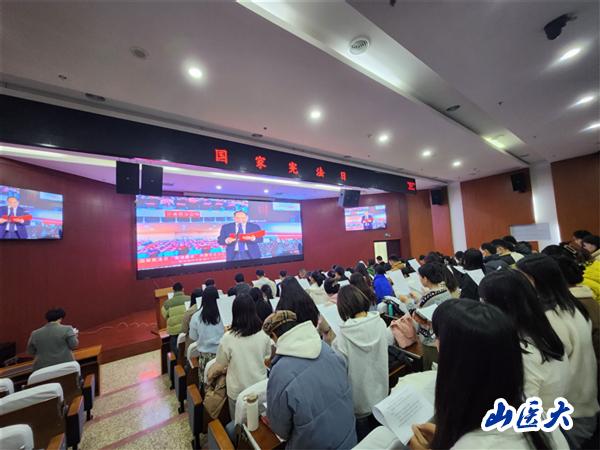 活动开始前,孙天青向学生代表们宣讲了宪法的重要性及意义,说明了本次活动的目的及具体流程。9时30分,师生代表通过视频连线与全国主会场学生一起诵读宪法部分条例,同唱歌曲《宪法伴我成长》,观看了第八届全国学生“学宪法 讲宪法”活动全国总决赛演讲比赛优秀选手的精彩展演。