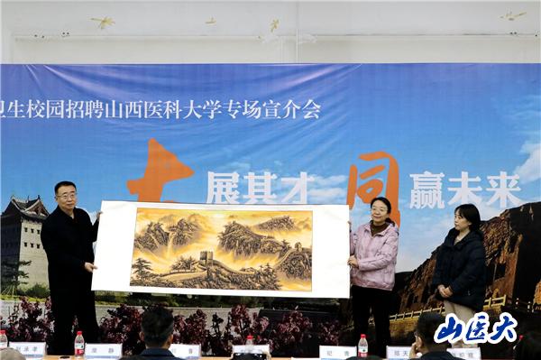 大同市卫健委领导向学校领导赠送了《长城》剪纸画,象征着市校双方将进一步深化合作,共育新时代医学人才,不断谱写校地协同发展新篇章。
