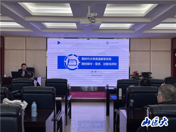 刘兵教授进行了题为《新时代大学英语教学改革路径探讨:需求、过程与评价》的讲座。他从大学英语教学现状出发,分析了新时代背景下英语教学改革的多方面需求,同时从教学设计、教学实施和教学效果三个方面,分享了太原理工大学本科、研究生外语教学改革的实践经验,为新医科背景下我校英语教学改革提供思路。通过分享经典研究,刘兵教授还特别强调了“教学相长”,教学与科研相互促进,为我系教师提供了宝贵的启示。