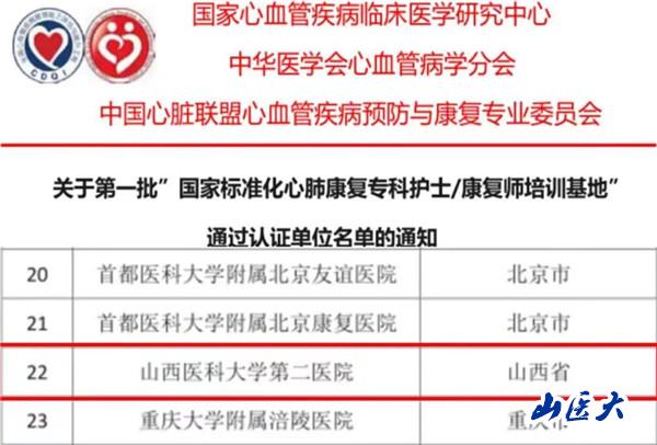 第二医院通过第一批国家标准化心肺康复专科护士康复师培训基地认证