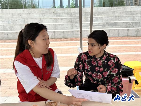 此次献血活动分别在图书馆北门和大学生服务中心门前设立采血点。为了此次活动的顺利进行,我校学生志愿者服务总队承担了相关的服务保障工作,志愿者们配合血站的工作人员开展了活动宣传、血型检测、献血者身体健康状况调查、献血申请表填写、献血后健康提醒等工作,志愿者们的付出与汗水也赢得了医护人员的赞赏与感激。