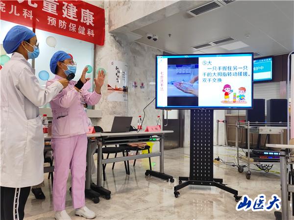 儿科主任刘晓莉首先向广大小朋友和家长们致以节日的问候,她强调儿童是祖国的未来,是民族的希望,医院儿科全体医护人员会不断努力以专业知识、精湛技术与优质的服务为儿童健康保驾护航。预防保健科李元红解读了“中国出生缺陷干预救助基金会”中的救助对象、救助病种、金额及具体的就医流程。在当前新型冠状病毒感染的二次高峰期间,儿童疫情防护是各位家长朋友们关心的热门话题,儿科郝江丽医师全面讲解了儿童新冠感染的临床表现、治疗方案、防护经验等相关问题,并强调了什么情况下需要带孩子及时就医。洗手是我们日常生活中常做的一件事情,但是家长、小朋友洗手的方法和医学要求还是有一些差距,为了告诉小朋友如何正确洗手,儿科护士王锦为在座的家长及患儿讲解了七步洗手法的具体步骤并进行了现场演示,活跃了现场气氛,并让小朋友们知道病菌无处不在,为了自己和家人的健康,要学会正确洗手。