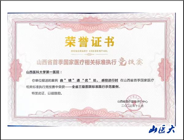 12月27日,历时近五个月的山西省首季国家医疗相关标准执行竞技赛落下帷幕,我校第一医院消化内镜案例“曲‘镜’通幽处,感控进行时”荣获标准践行示范案例奖,消化内科副主任护师张娜获最佳个人现场表现奖。