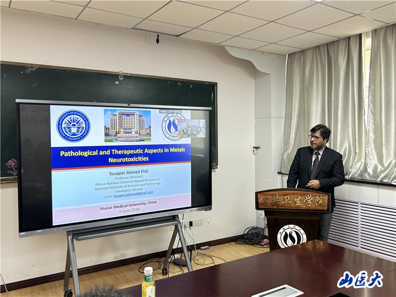 6月6日下午,我校公共卫生学院邀请巴基斯坦国立科技大学Touqeer Ahmed教授作专题报告。公共卫生学院副院长邬惟为、牛侨教授等相关学科骨干教师及研究生参加了报告会。