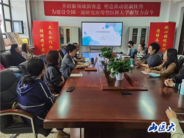 郑洁老师对讲授内容进行了评价,并为外语课程思政设计提供了思路。她首先强调了医学院校课程思政工作对于培养医者仁心的重要性。其次,她对具体的教学设计提出了建议,认为学情分析并非流于形式而是重中之重。教师在实践中既要了解一门课的学情,同时也要了解一个单元甚至一个课时的学情。只有这样才能真正了解学生需求对症下药,不能只谈情怀而不切实际。她还谈到,外语课程要充分挖掘医学院校及中西方文化中与医学相关的人文元素,通过收集整理外语课程思政案例库等,形成本课程的辨识度,真正发挥育人功能。郑洁老师还鼓励我系教师既要有敢闯敢干的魄力,也要有牺牲奉献的精神,要发挥团队优势,分工协作,积极进行教学教研探索,实现个人和院系的发展。最后,我系教师还就一线教学中遇到的困惑和困难同郑洁老师进行了深度的交流与热烈的探讨。
