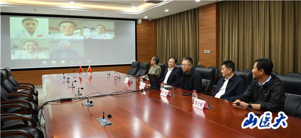 随着网络视频摄像头打开,大家见到了远在非洲多哥开展医疗援助工作的我校第二医院4位医疗队员,此起彼伏的问候声不绝于耳。四位队员依次作自我介绍,并就个人工作情况作了汇报。他们分别是:我校第二医院派出的中国(山西)第25批援多哥洛美地区中心医院医疗队员田树杰,中国(山西)第26批援多哥卡拉地区中心医院骨科医生梁海鹏、放射科医生石瑞、麻醉科医生尹鹏飞。