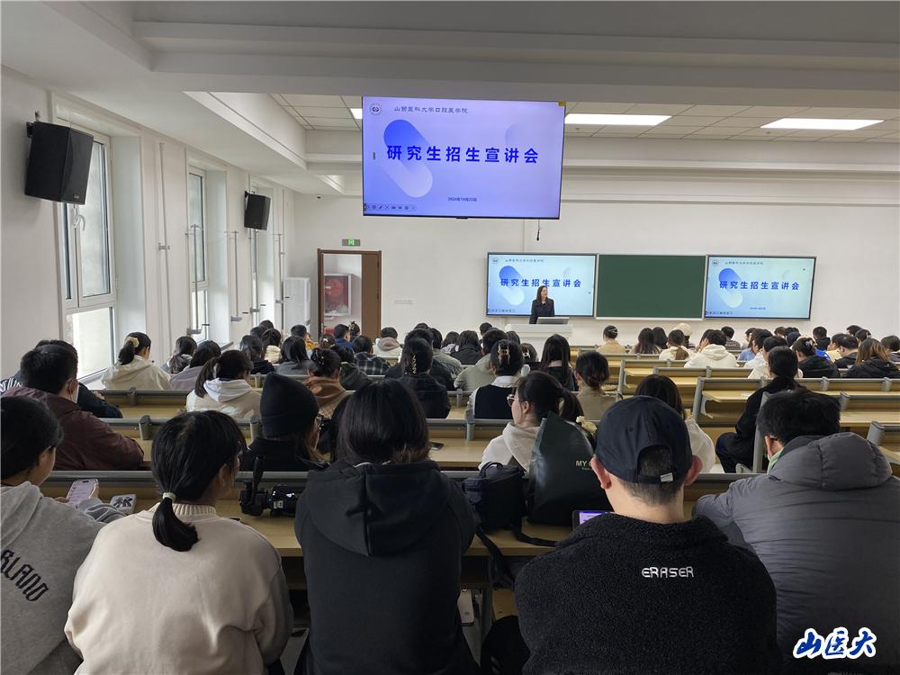 10月25日,口腔医学院在迎泽校区举办2025年研究生招生宣讲会。口腔医学院党委书记任秀云、副院长王兴、历届成功考研的优秀学子及2020级本科应届毕业生等140余人参加会议。