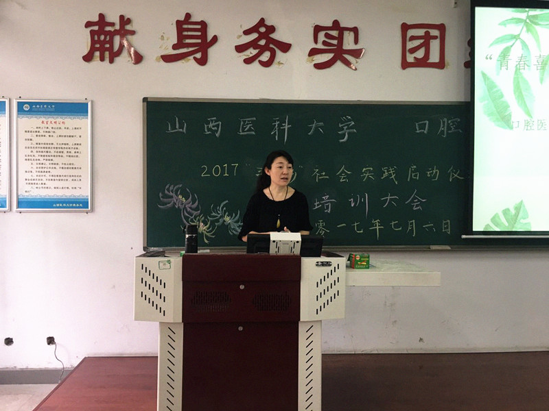 启动仪式上,殷凤副书记首先传达了学校2017年暑期“三下乡”社会实践的相关精神,就本次暑期社会实践的意义和内容做了简单介绍,对活动相关事项进行了培训,重点强调了安全问题。她表示,本次“三下乡”活动旨在积极响应习近平总书记视察山西重要讲话精神,鼓舞青年学生紧密结合所学的专业技术知识,深入基层开展多种形式的口腔健康宣传教育活动,用实际行动服务新农村建设,对于同学们增加阅历、提升自我价值、丰富大学生活具有十分重要的意义。希望大家能在注意安全的前提下,真正的利用这次有限而又难得的社会实践机会锻炼自我,发动一切积极因素,做出一些贡献与成绩。