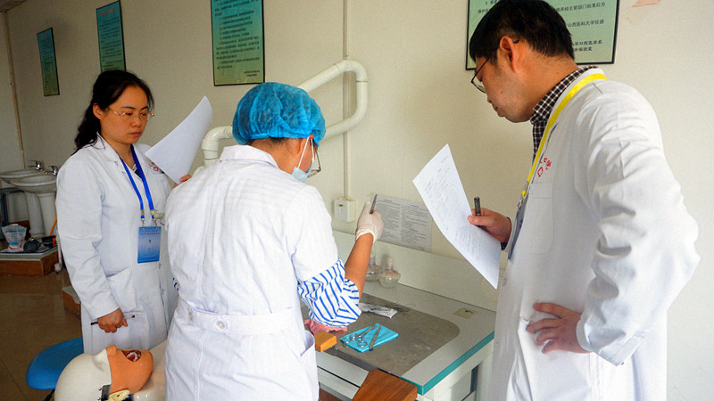 本次考核包括口腔全科、口腔修复科、口腔正畸科、口腔颌面外科四个专业学科。按照山西省卫计委住院医师规范化培训临床技能结业考核要求,采用OSCE多站式考核形式,通过现场读片、病例分析(面试提问)、模型基本技能和专业特色技能操作进行考核,并当场进行评分。