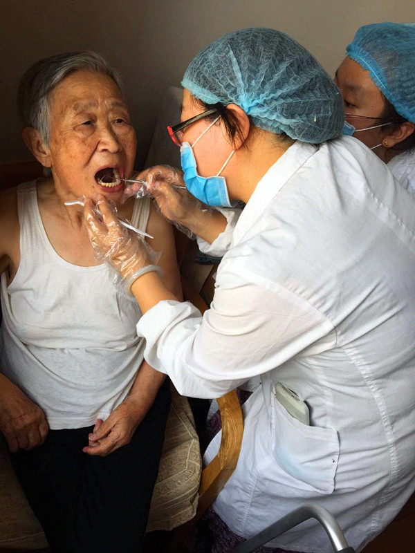 在指导老师的带领下同学们将社会调查、医疗服务、免费义诊和健康宣教相结合,开展了问卷调查与口腔检查,从黏膜、龋病、牙周、缺牙以及义齿修复五个方面对老人们的口腔状况进行全面调查,记录了最详尽的第一手资料,有针对性的对老人们的错误口腔保健习惯进行了纠正,普及了科学健康的口腔卫生保健知识,并送上了精心准备的专业口腔保健牙具,得到了老人们的认可和好评。