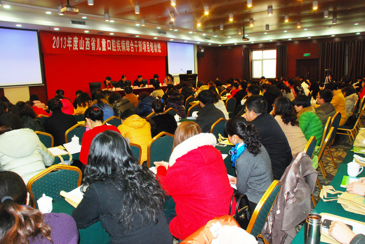 2月18日,由我院承办的2013年度山西省儿童口腔疾病综合干预培训会议在太原市华苑宾馆召开,来自全省27各市、县卫生局的项目负责人,以及33家定点医疗机构的项目负责人和专业技术人员共140余人参加了会议。