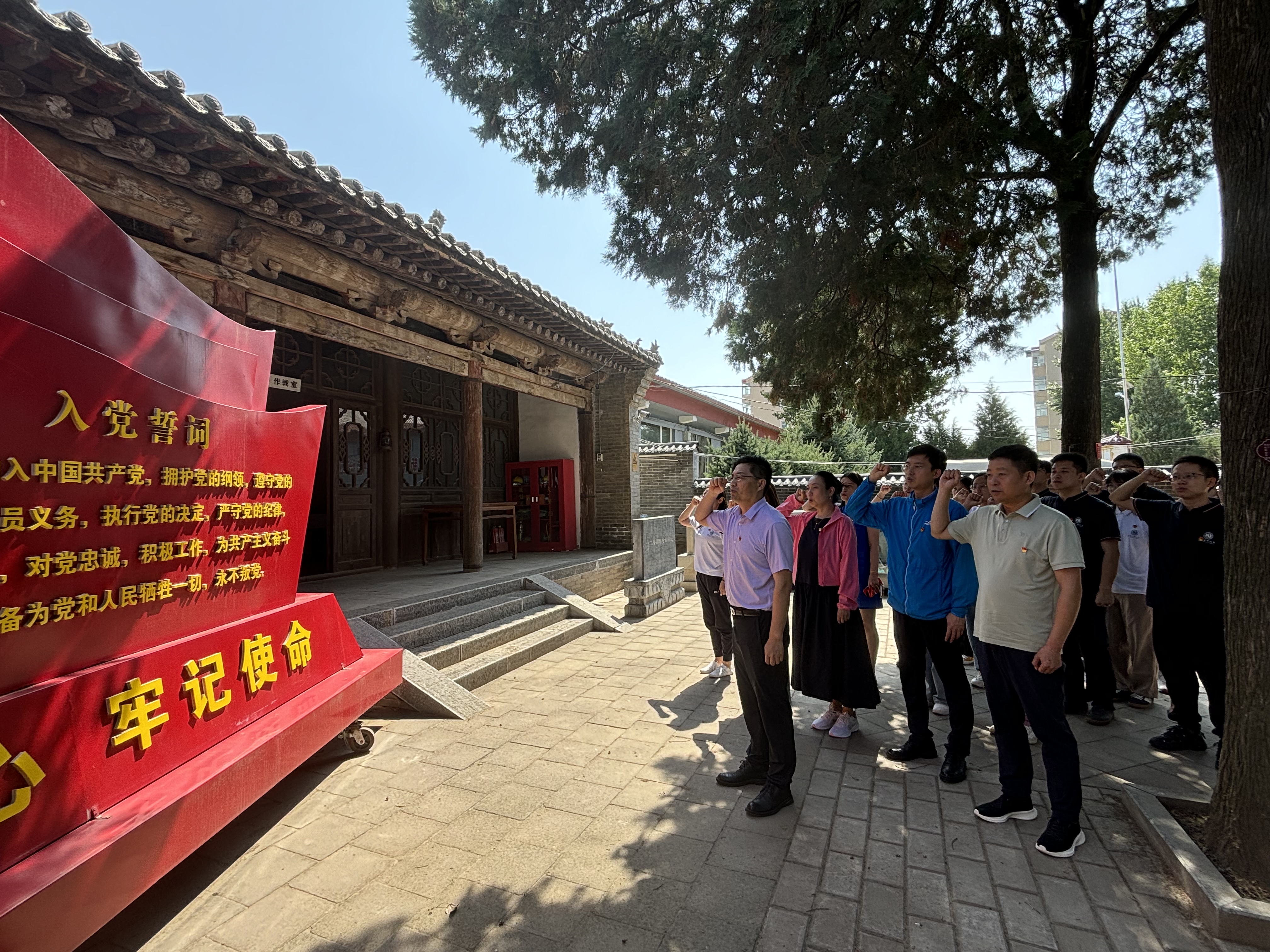 上午,大家参观了120师师史馆,深入回顾了这支英雄队伍的辉煌历程和革命传统。岚县,作为战略要地,承担着保卫晋绥边区、陕甘宁根据地等多项重大任务,而120师正是这片土地上英勇奋战的杰出代表。通过参观,党员们亲身感受到了革命先烈们在艰苦环境下坚守革命信念、为解放事业英勇献身的崇高精神。随后,在李冰副书记的带领下,全体党员重温了入党誓词,再次坚定了为共产主义事业奋斗终身的决心和信念。