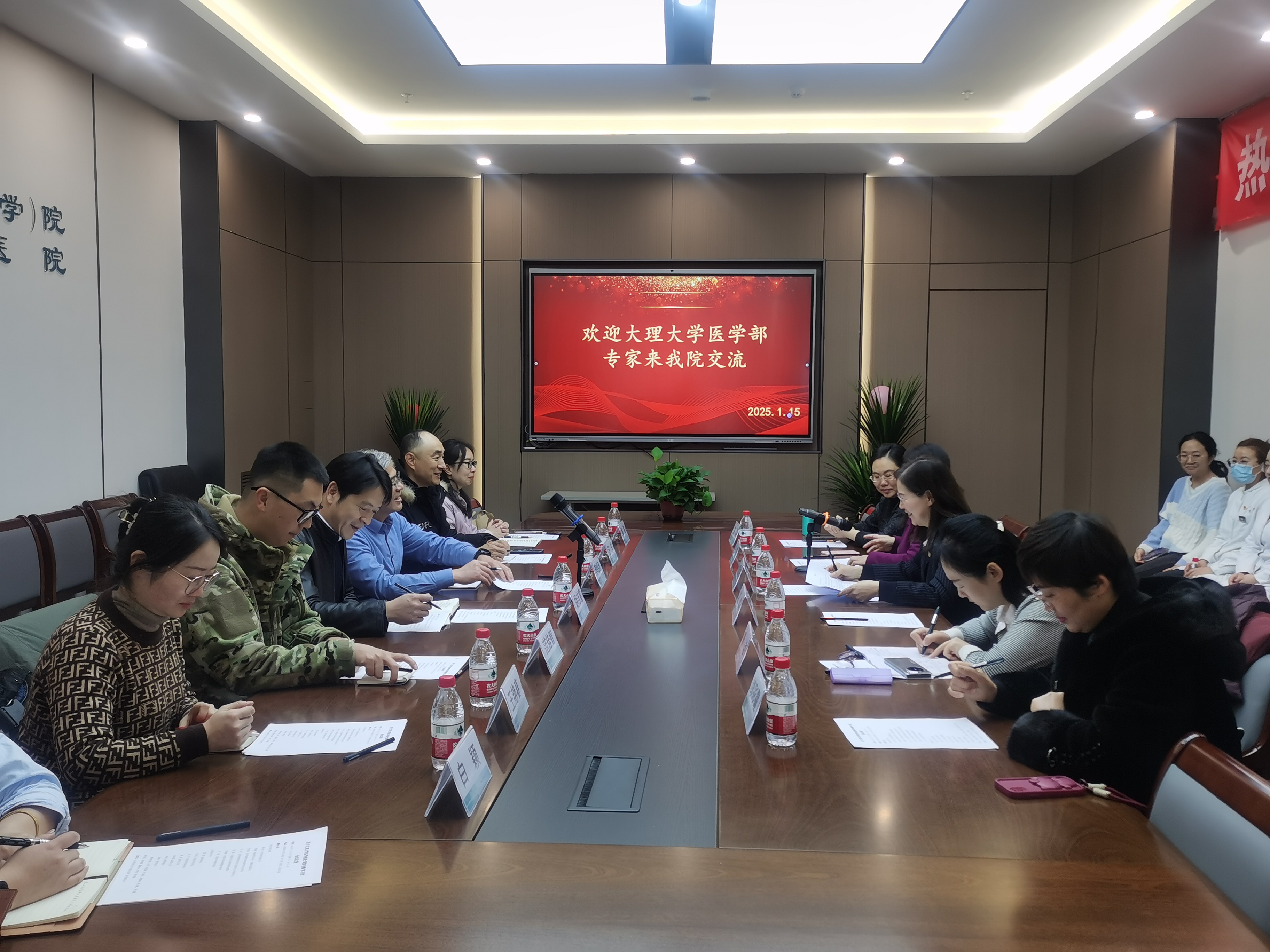 2025年1月15日,大理大学医学部常务副主任胡吉富,临床医学院、第一附属医院副院长李绍波等一行7人到我院学习交流口腔医学类专业认证工作。欢迎仪式在我院东院区第一会议室召开,我校教务部副部长秦洁,我院党委书记任秀云、副院长张芳、教学办主任姚蔚、教师代表参加仪式,张芳副院长主持仪式。