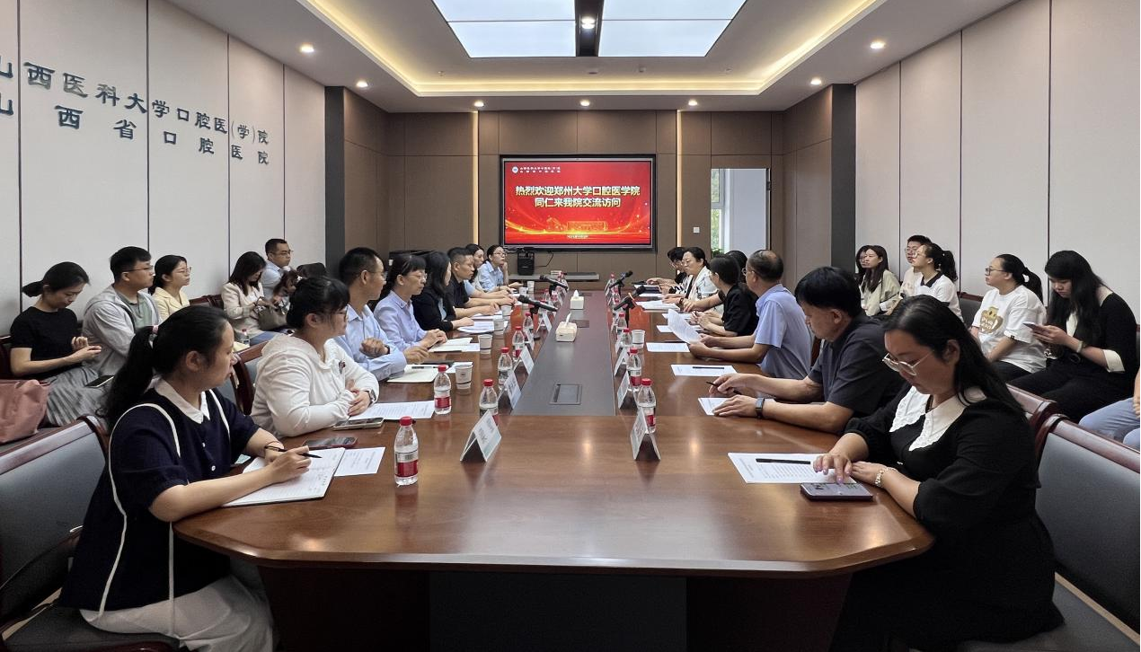 院长赵彬对郑州大学口腔医学院一行的到来表示热烈欢迎,并详细介绍了我院在发展历程、组织架构、教学科研平台、人才培养体系以及社会服务等方面的总体情况与实践路径。朱娟芳副院长对我院的热情接待表示感谢,并介绍了郑州大学口腔医学院的整体情况。她表示,希望通过此次交流,进一步推动两院口腔医学教育的发展。