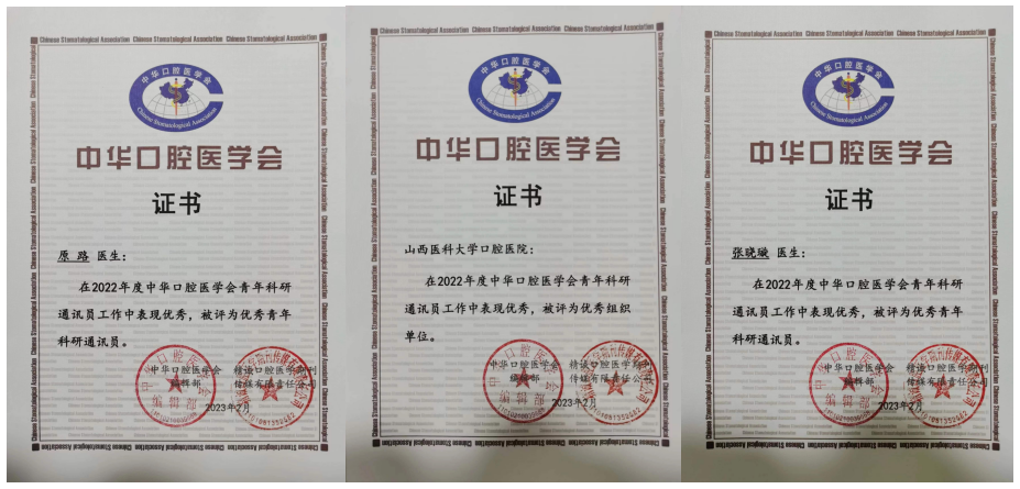 我院荣获中华口腔医学会“2022年度青年科研通讯工作优秀组织单位”称号