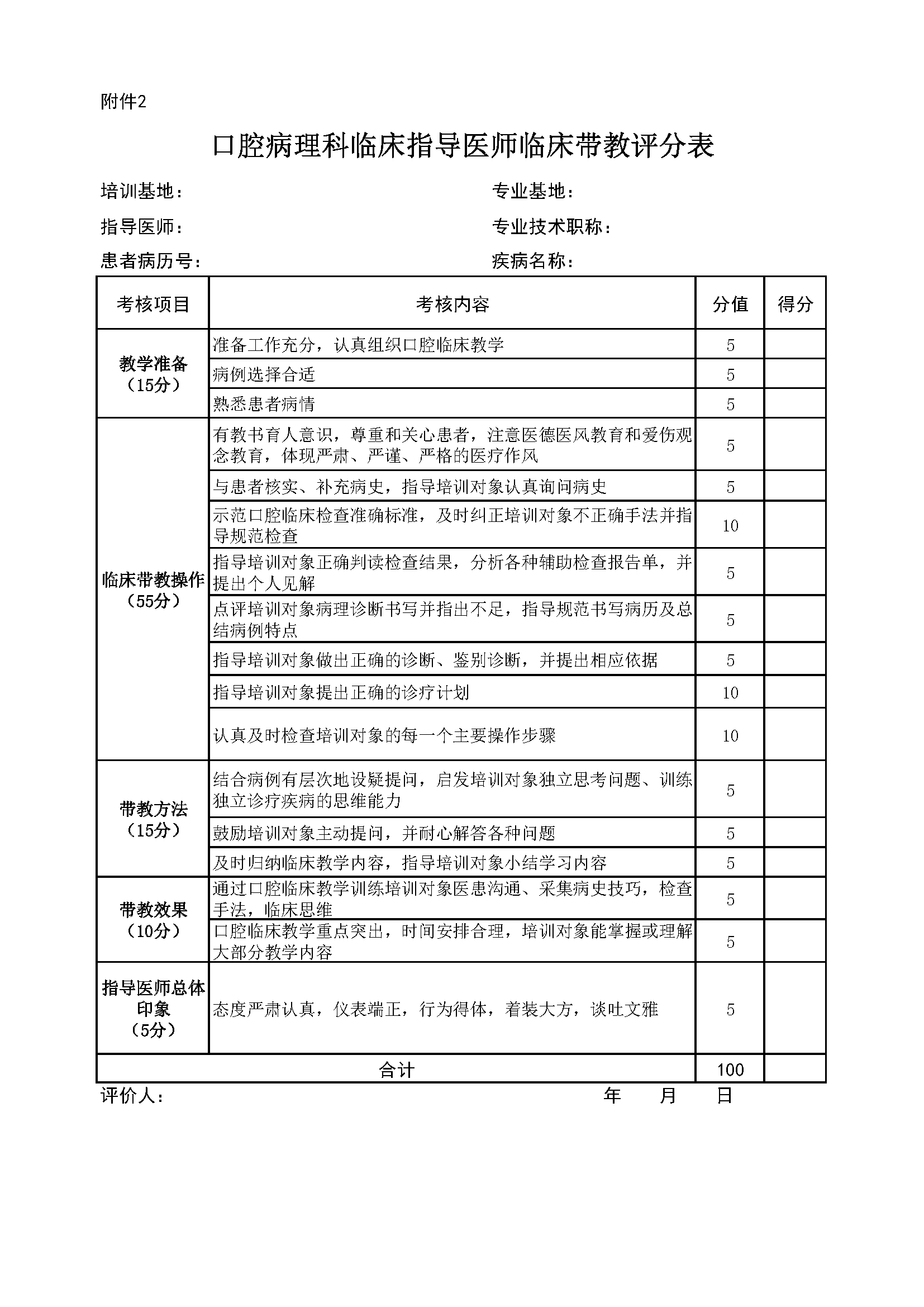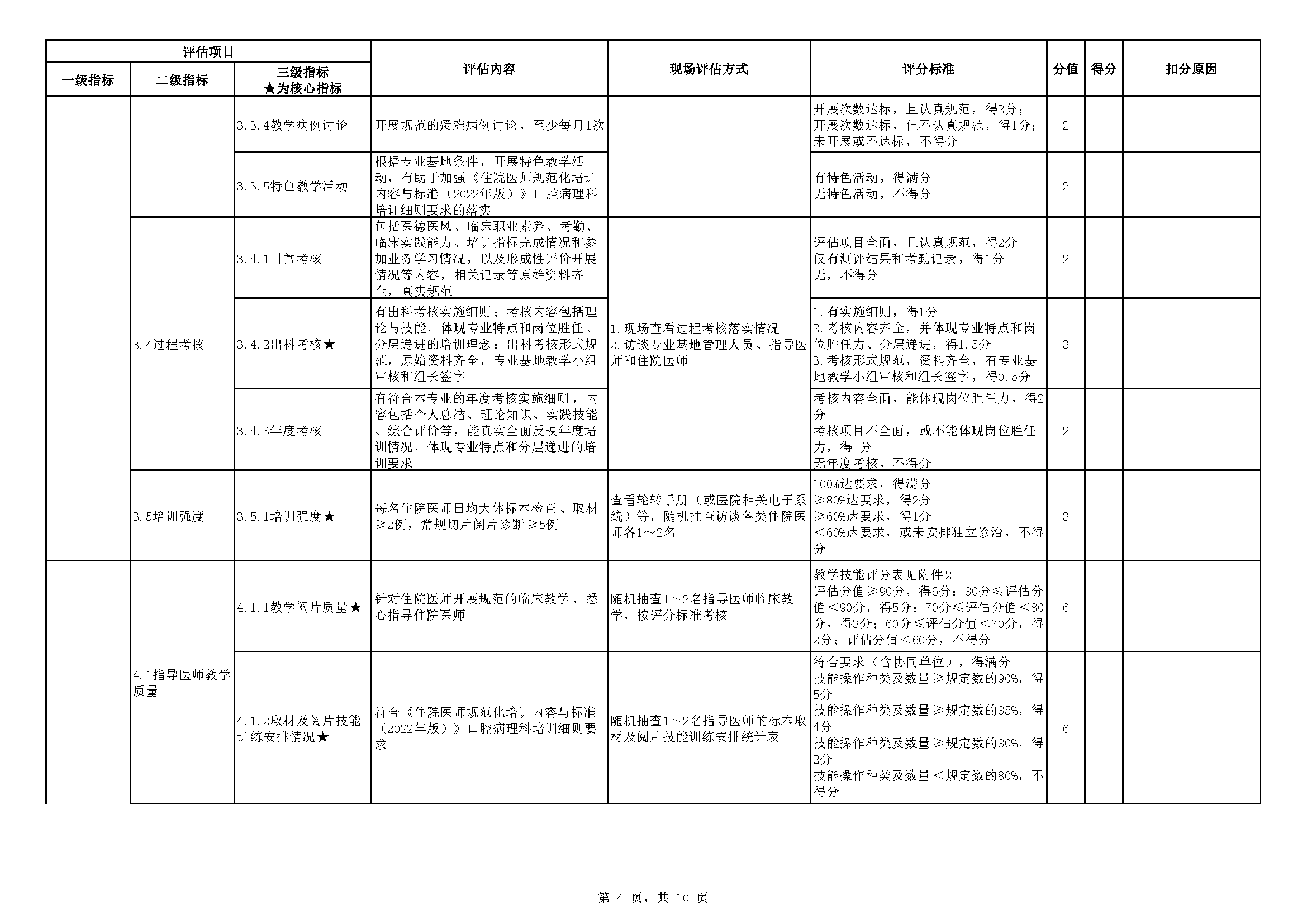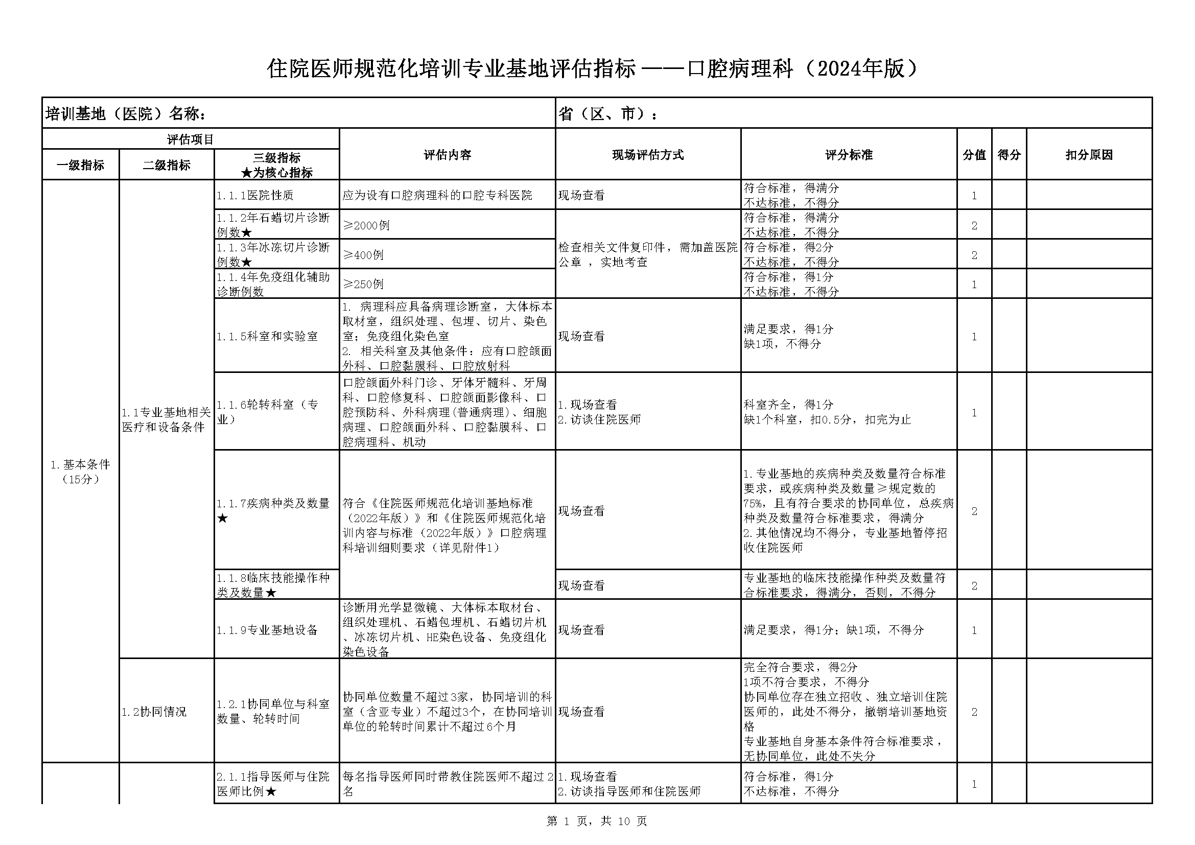 住院医师规范化培训专业基地评估指标 ——口腔病理科(2024年版)