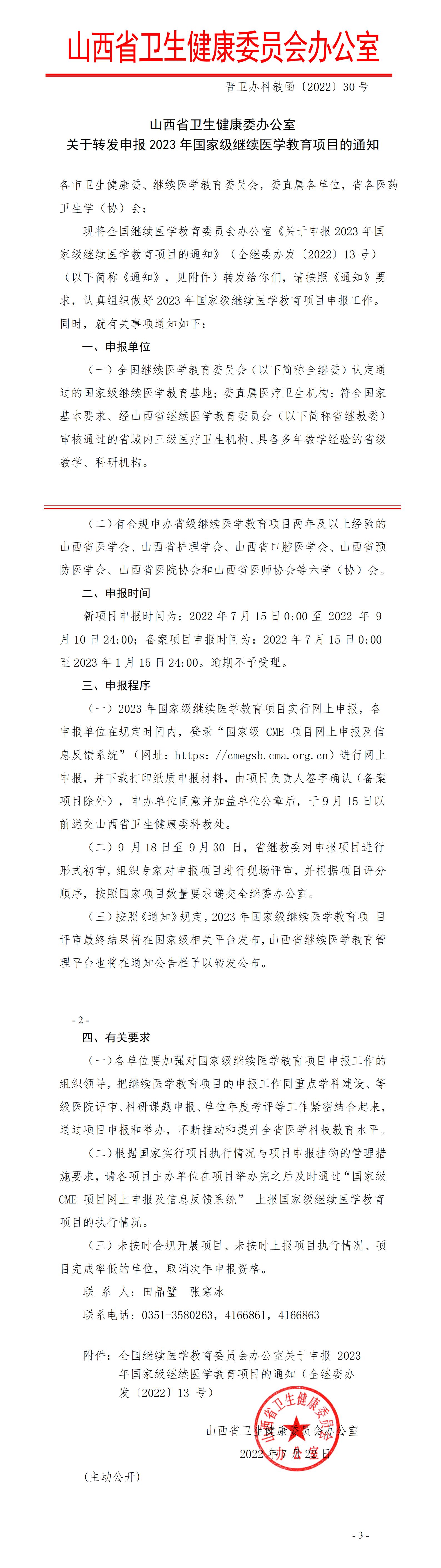山西省继续医学教育委员会关于申报2023年国家级继续医学教育项目的通知