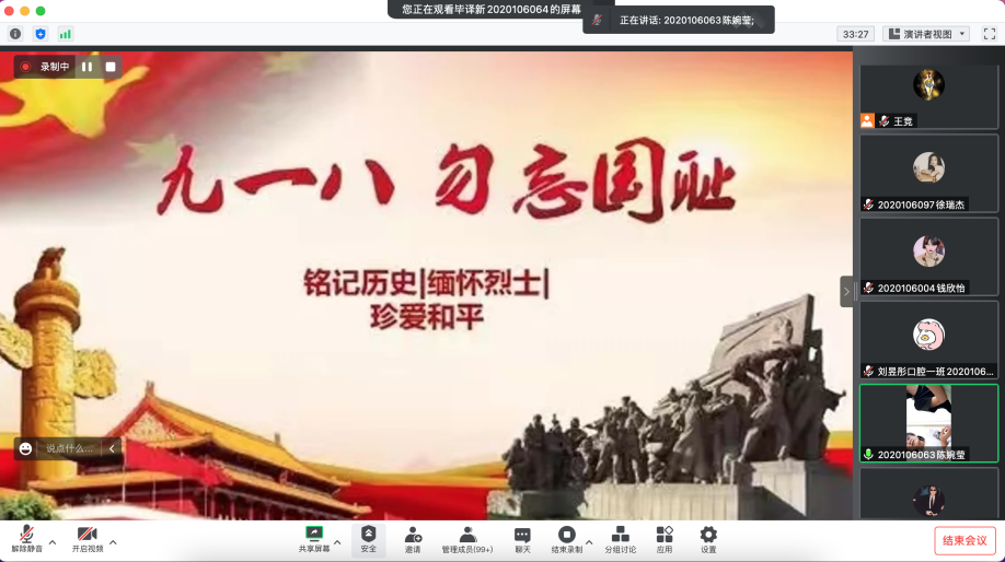 ——我院2020级本科生召开“不忘九·一八”线上主题班会