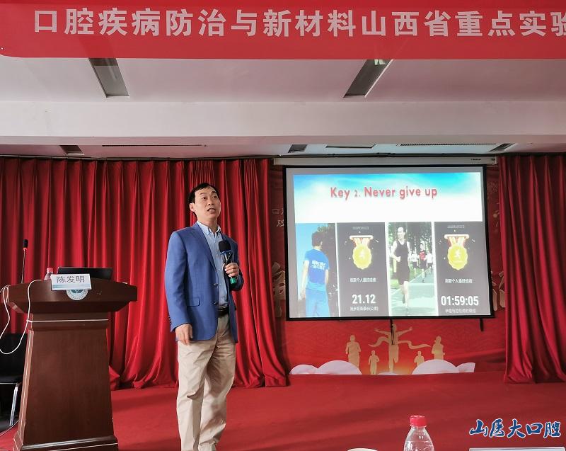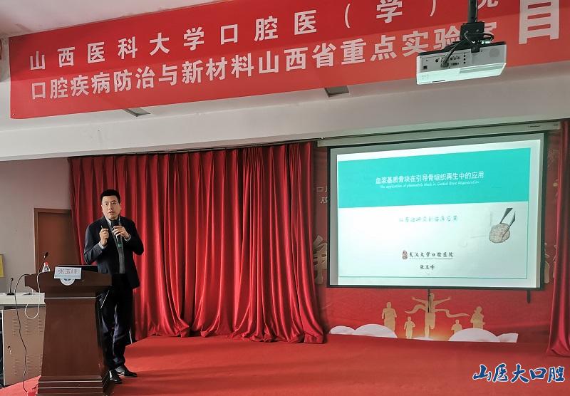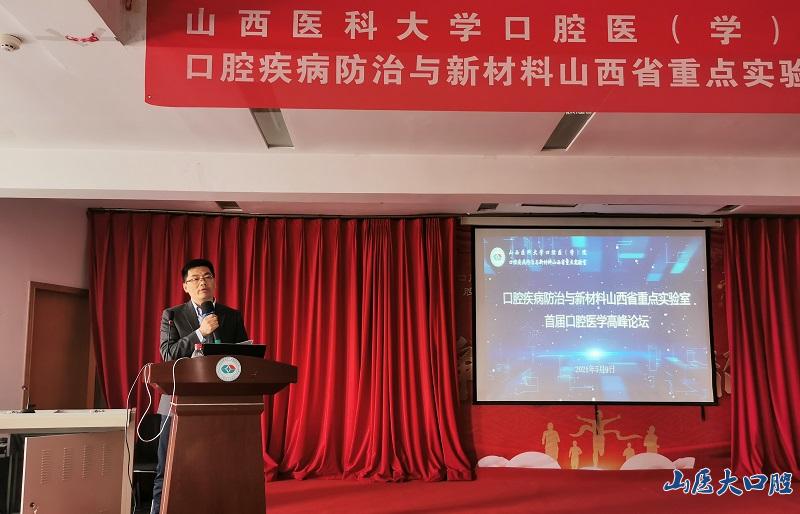 2021年5月9日上午,口腔疾病防治与新材料山西省重点实验室首届口腔医学高峰论坛在我院八层学术报告厅顺利召开,空军军医大学第三附属医院陈发明教授、四川大学华西口腔医学院林云锋研究员、武汉大学口腔医学院张玉峰教授受邀作专题报告。我院党委书记任秀云教授,党委副书记、副院长李冰教授出席高峰论坛。李冰副书记、副院长主持会议。