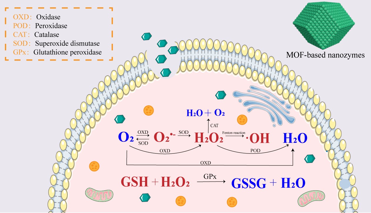 纳米酶是一种具有仿酶活性的纳米材料,因其稳定性、可调性和成本效益而在生物医学领域备受关注。其中,基于金属有机框架(Metal-Organic Framework,MOF)的纳米酶因其独特的结构和可定制的特性脱颖而出。文章首先全面介绍了基于MOF的纳米酶的分类,这些纳米酶旨在模仿氧化酶、过氧化物酶、过氧化氢酶、超氧化物歧化酶、水解酶和多功能酶的催化功能,深入研究了基于MOF的纳米酶对特定刺激的反应,以确保在环境变化中提高催化性能的特异性和有效性。此外,该论文还介绍了MOF基纳米酶在癌症治疗、组织再生等生物医学方面取得的研究进展,并深入探讨了该前沿领域的未来机遇和挑战。这些基于刺激响应MOF的纳米酶为先进的治疗策略提供了新的途径,为创新的生物医学应用提供了前景。