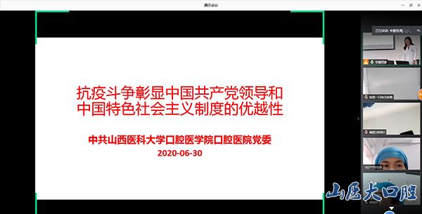 6月30日,我院开展了庆祝中国共产党成立99周年系列活动。在共同抵抗新型冠状病毒的特殊时期,我院首次采用线上云会议、云纪念的方式对会议进行实时直播。全体教工党员、中层干部通过“腾讯会议”手机端、电脑端实现在线收看,“线上+线下”共同庆祝党的生日。活动由院党委副书记李冰主持。