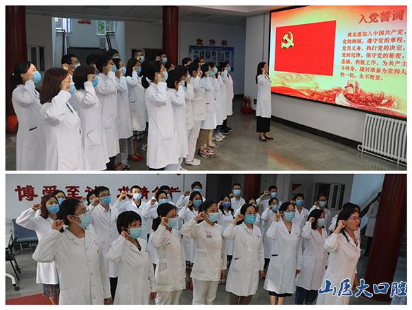 随后,新党员面对党旗庄严宣誓,老党员重温了入党誓词。大家纷纷表示,通过此次活动坚定和统一了理想信念,增强了党性意识,将不忘初心、牢记使命,在今后的各项工作中,要充分发挥党员先锋模范作用,提高业务治理能力,爱国爱党,众志成城,为早日打赢疫情防控阻击战努力奋斗,同时为实现我院区域高水平特色鲜明的三级甲等口腔专科医院和我校“两个一百年”的目标贡献自己的力量。