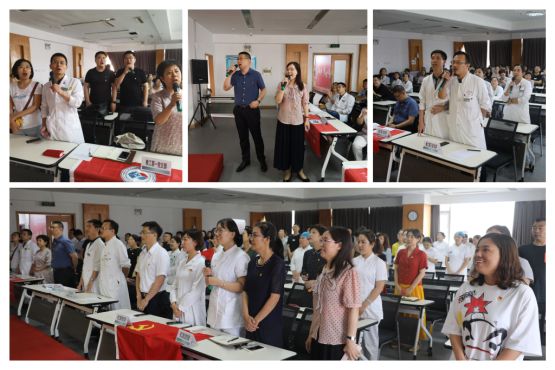 最后,广大党员干部面对党旗重温入党誓词。大家纷纷表示,通过此次活动坚定和统一了理想信念,增强了党性意识,将不忘初心、牢记使命,以更加饱满的热情、更加昂扬的斗志、更加务实的作风,立足岗位,扎实工作,为我院三甲医院创建工作献计献策,自觉地把学习教育成效转化为履行岗位职责的实践中,为实现山医“两个一百名”的目标而奋斗。