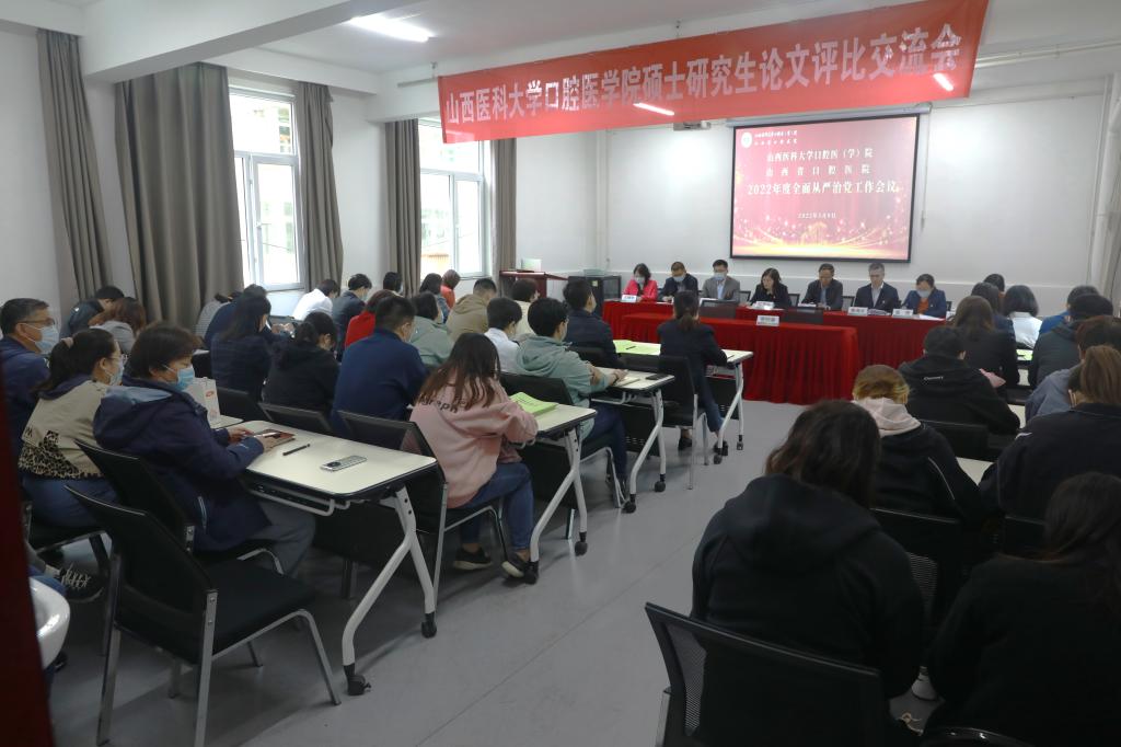 会议强调,2022年是党的二十大召开之年,是贯彻省第十二次党代会精神、全方位推动高质量发展的关键之年,也是口腔医学院、口腔医院深化“十四五”事业发展的踔厉奋发之年。院党委要深入学习贯彻习近平总书记关于全面从严治党、教育工作重要论述和考察调研山西重要指示精神,围绕“全面建设清廉口院”目标,持续推进院全面从严治党向纵深发展,重点抓好五个方面工作:一是强化政治思想引领,坚决捍卫“两个确立”,做到“两个维护”。二是全面建设“清廉口院”,构建良好医院政治生态和育人生态。三是从严抓好基层党组织建设,进一步强化战斗堡垒作用。四是牢牢掌握意识形态工作领导权,有力有序有效防范化解重大风险。五是聚焦“三不”一体推进,从严抓好党风廉政建设和反腐败斗争。