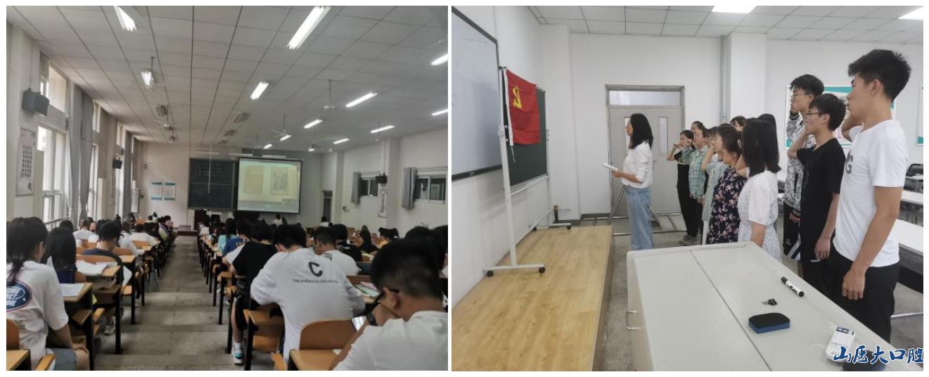视频中讲解员详细介绍了中国共产党第一次全国代表大会会址纪念馆,隔空带领同学们重温了这段红色历史,共同追寻先烈足迹,传承红色精神。通过参观,使同学们对党的建立、发展到成熟的过程有了进一步的认识,也更坚定了共产主义的信念。参观完毕后,我院思想政治辅导员侯芳宇带领党员学生在党旗下重温入党誓词,嘱咐同学们不忘初心、牢记使命,为党和国家奋斗终身。