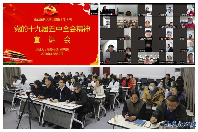 为深入学习贯彻党的十九届五中全会精神,12月30日下午,我院在科教楼219室举办党的十九届五中全会精神宣讲会,党委书记任秀云作专题宣讲,院领导、党办、组织科、工会、团委、学生科、各支部书记、各支委、学生党员及教职工等共200余人通过线上和线下形式参加会议。