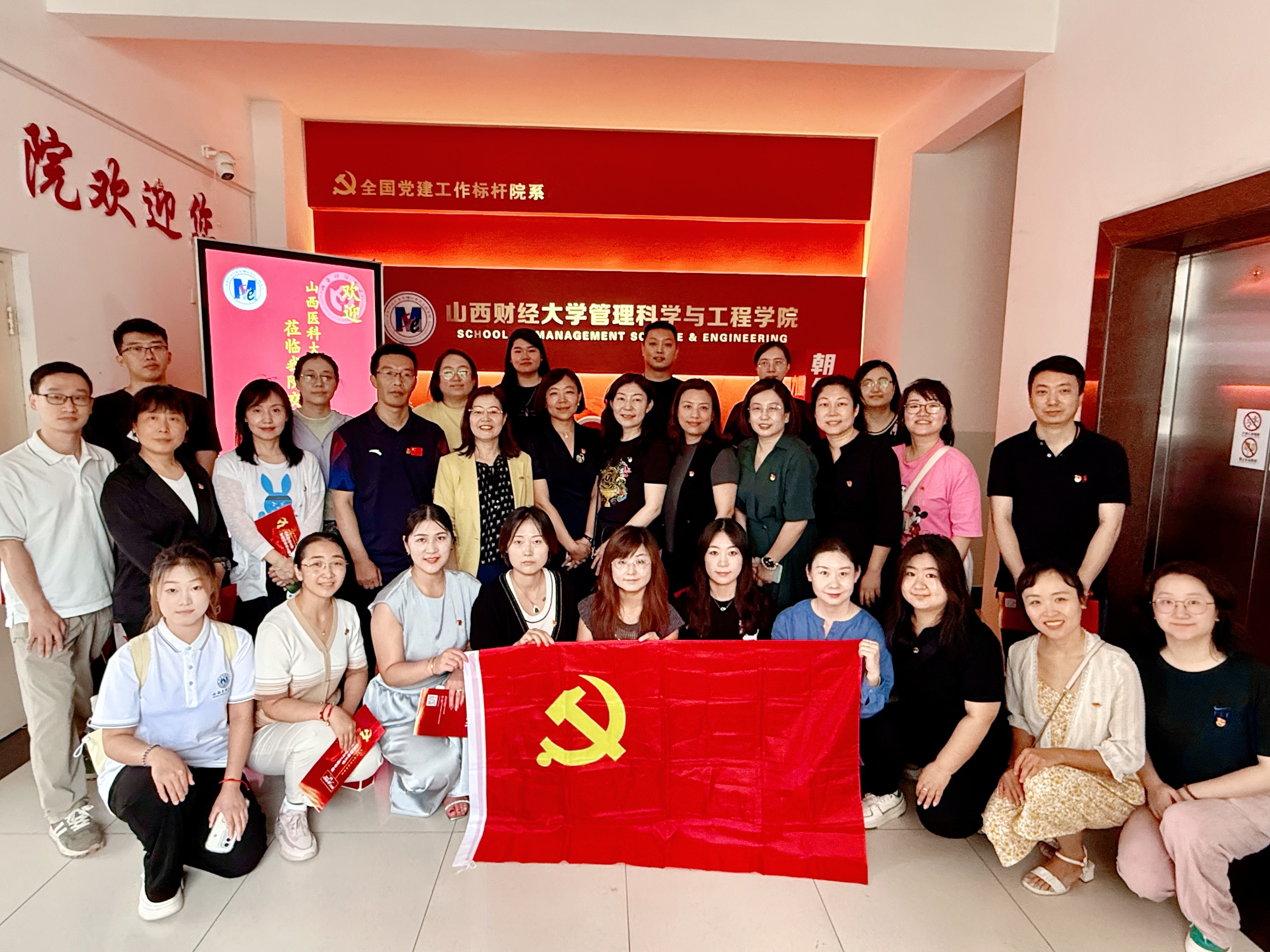 为深入学习全国党建工作标杆院系的先进经验,切实提升基层党组织建设质量,7月3日上午,我校口腔医学院(口腔医院)党委联合体育教学部(运动康复系)党总支赴全国党建工作标杆院系、山西财经大学管理科学与工程学院党委开展联组共学活动。活动由口腔医学院(口腔医院)党委书记任秀云与体育教学部(运动康复系)党总支书记殷凤带队,山西财经大学管理科学与工程学院党委副书记陈霞全程陪同讲解,两院系党支部委员及党委部门相关工作人员共同参加活动。