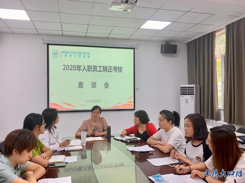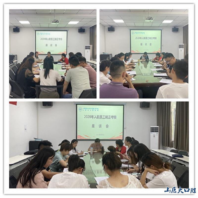 为深入了解新进员工的工作、生活和思想状况,收集青年员工对个人成长的意见和建议,8月3日-6日,我院在口腔科教楼215会议室分三批次召开2020年入职员工转正考核座谈会。院党委书记任秀云、副院长王翔宇、人事科负责人李颖以及36名2020年入职员工参加座谈。