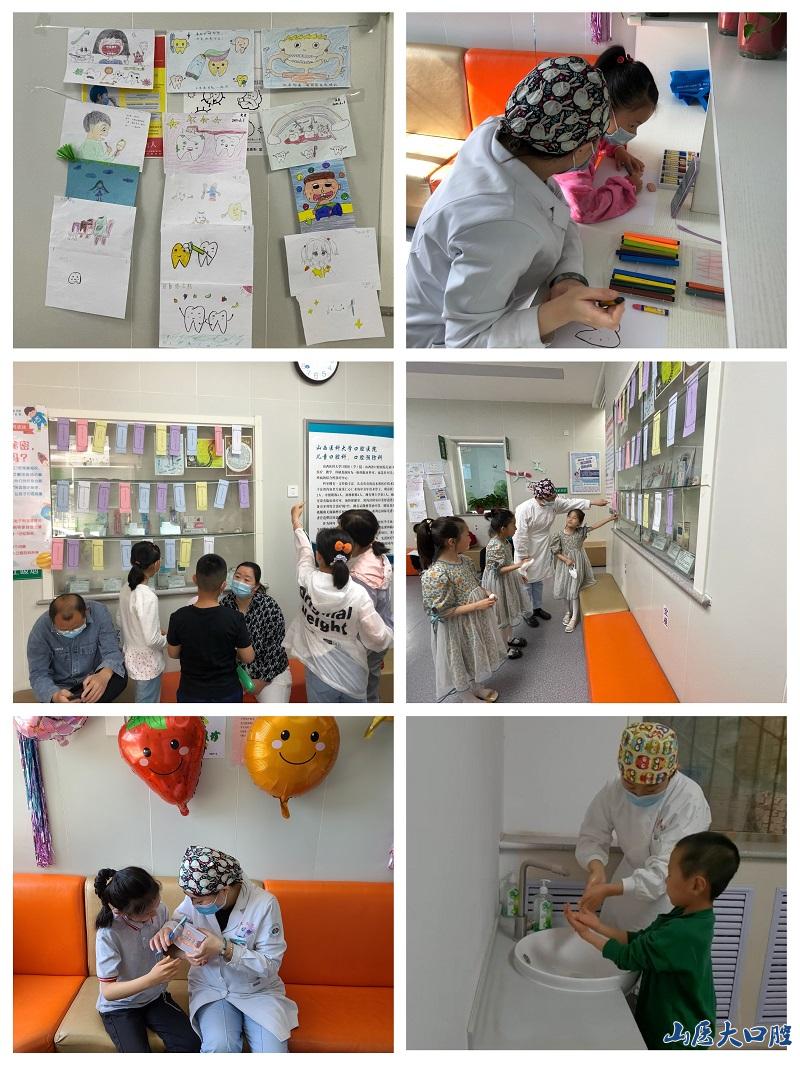 5月29日,儿口预防科举办了“牙牙漫画家”绘画展、“牙齿的小秘密,你知道吗?”知识问答活动和“爱牙护齿小讲堂”口腔宣教的系列活动。绘画展中,小朋友们充分发挥了他们的想象力和创造力,用缤纷画笔描绘出一幅幅心目中的“小白牙”。“牙齿的小秘密”知识问答活动则让枯燥的宣教变得生动有趣,让更多的儿童和他们的家庭共同树立了正确的口腔保健观念。在布置温馨的候诊区,医护人员用有趣生动的语言手把手地教小朋友正确刷牙、使用牙线,并向在场的家长和小朋友们进行口腔健康知识以及七步洗手法的科普宣传。