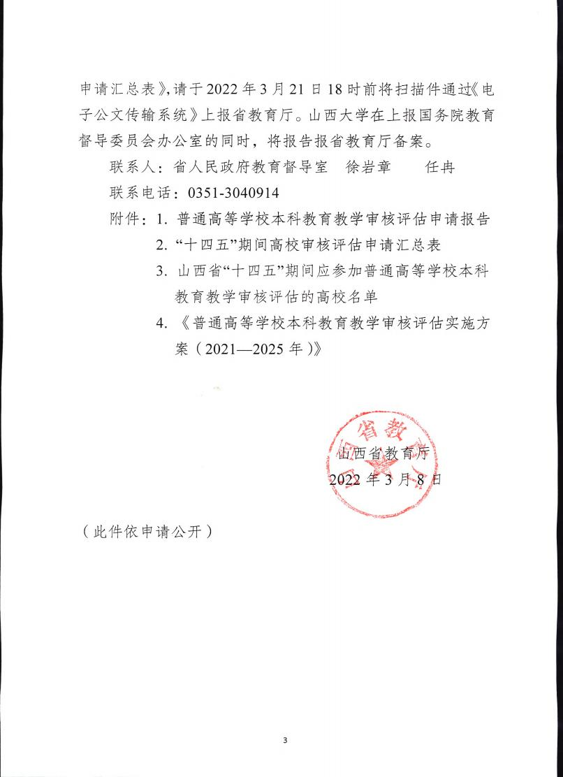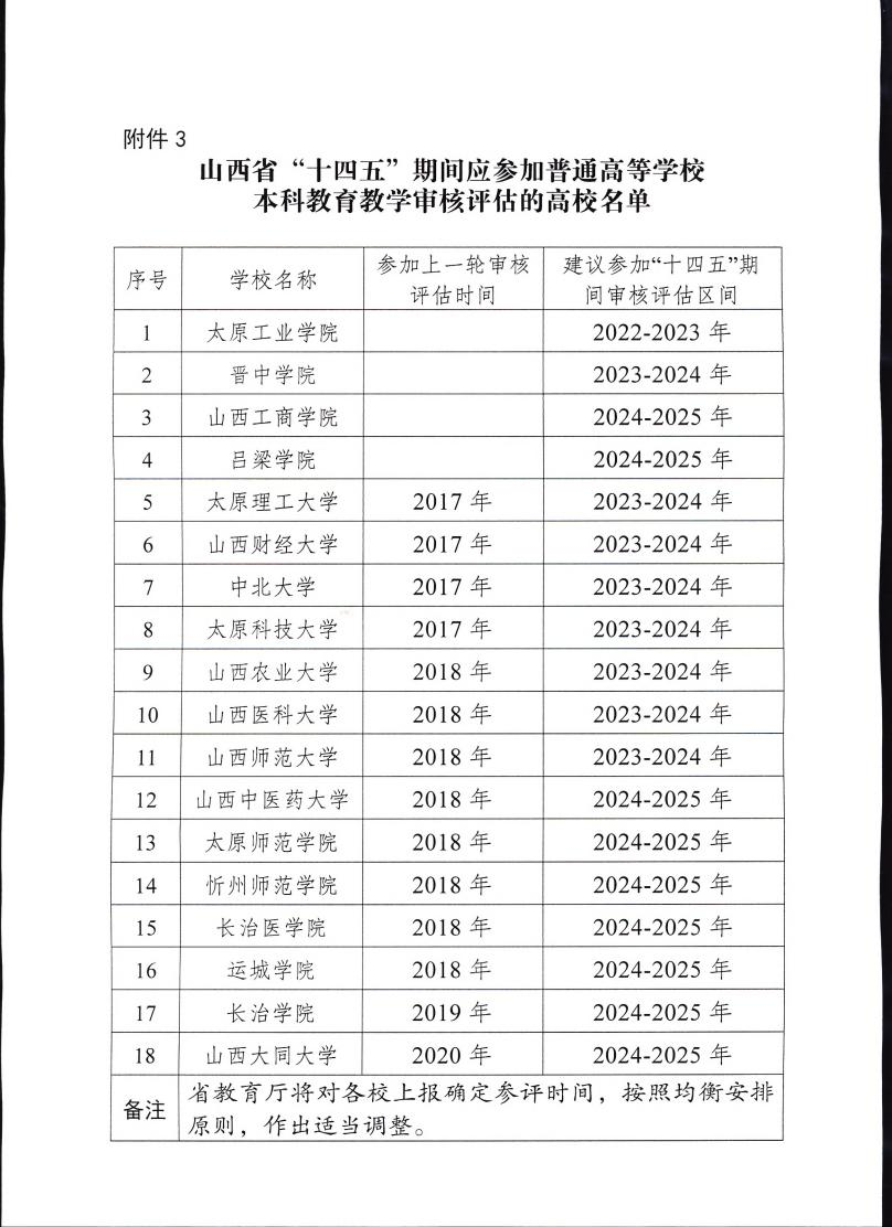 山西省教育厅关于报送山西省“十四五”期间普通高等学校本科教育教学审核评估计划的通知-本科教学工作审核评估
