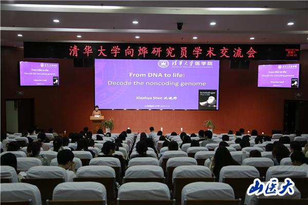 沈晓骅以《From DNA to Life: Decode the noncoding genome》为题,介绍了探索非编码基因组影响转录和染色质结构的新模式,从独特视角认识发育和干细胞分化中细胞命运决定的普适性规律。包括揭示非编码RNA顺式调控邻近转录和染色质构象;揭示基因组折叠的基层规律,提出转座子重复序列(L1 和 B1/Alu)是染色质三维大尺度结构形成的遗传分子基础;RNA结合蛋白通过相分离反馈调控转录和染色质状态。向烨以《病原微生物研究-从临床到基础分别》为题,分享了近年来人类重大病毒性传染病的爆发及流行,介绍了其团队聚焦于病原微生物结构,致力于研究病毒入侵及组装分子机制,并基于结构开发生物药物及疫苗。报告视野宽阔、内容丰富、生动详实、深入浅出,为我校师生奉献了一场精彩纷呈的学术盛宴。